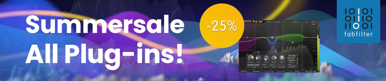 Nu är det rätt läge att uppgradera din ljudproduktion! Under FabFilters Summer Sale får du 25 % rabatt på hela deras sortiment av plug-ins – oavsett om du behöver en kraftfull equalizer, en transparent kompressor, kreativ distortion eller världsledande reverb.