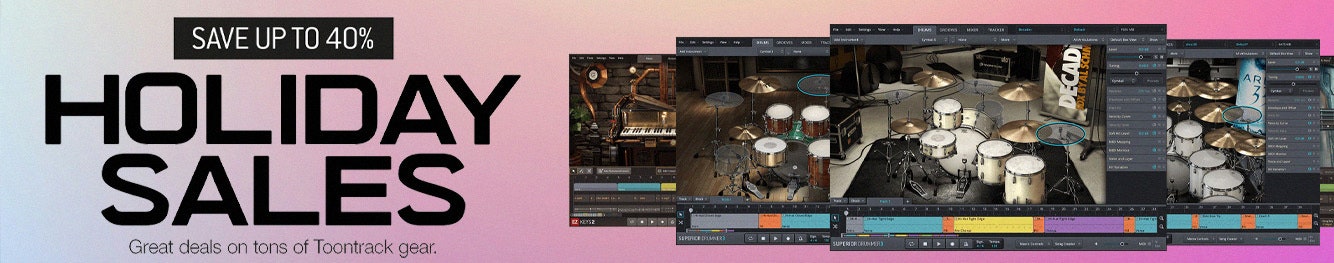Toontrack Holiday Sales! Upp till 40% off på marknadens mest omfattande mjukvaror för trummor!