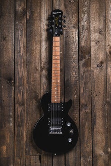 Elgitarr, kompakt Les Paul-design med mahognykropp och humbuckers, kort mensur för lättspelad känsla,...