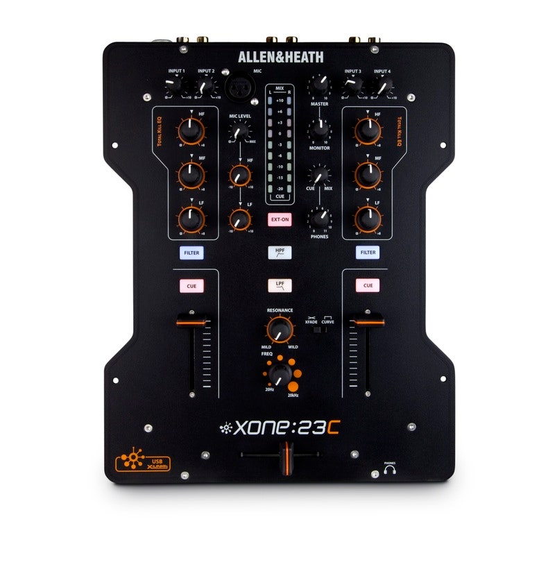 Xone:23C includes an enhanced version of the legendary Xone filter with resonance control, VCA faders, 3 band total kill EQ, illuminated switches, crossfader curve selector and styling inspired by the flagship Xone:DB4.