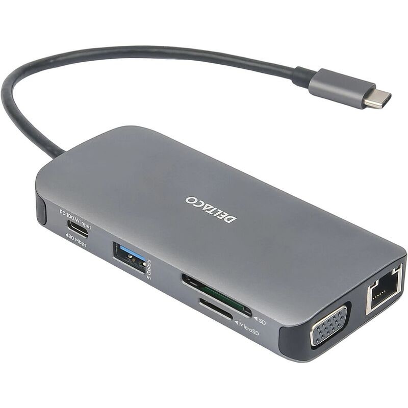 Deltaco USB-C dockningsstation 9-i-1 – HDMI, VGA, Ethernet och Power Delivery i ett kompakt format