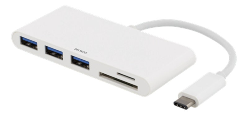 Artikelnummer 1073350USB 3.1 Gen 1-hubb, USB-C hane till 3xUSB Typ A hona, SD/microSD-kortläsare,vit