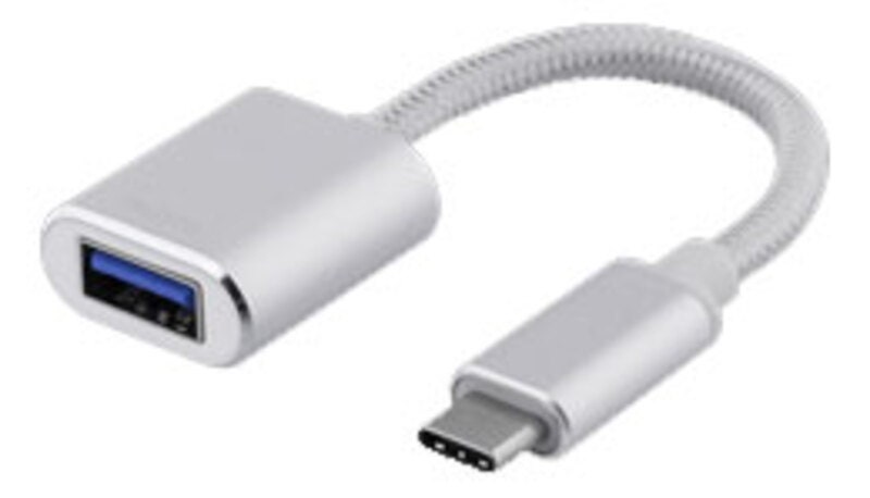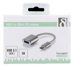 Artikelnummer 1078560USB-C 3.1 Gen 1 till USB-A OTG adapter, 3A, aluminium, retail box, 0,1m tygbeklädd kabel silver