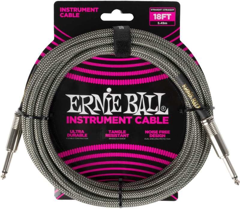 Instrumentkabel, 6,3mm raka telekontakter, flätat ytterhölje, 5,4 meter