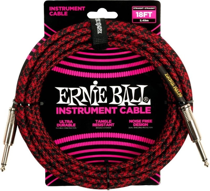 Ernie Ball 6396 - 5,5m Flätad Röd/Svart Instrumentkabel Tele/Tele