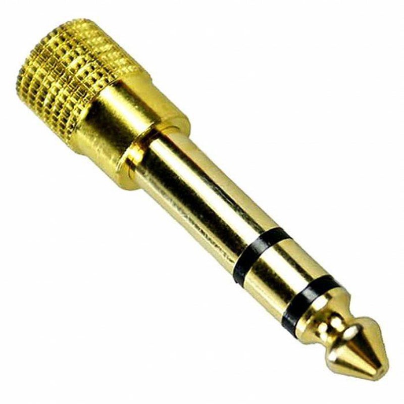 Artikelnummer 1066112Guldpläterad hörlurs-adapter, stereo 3,5mm till 6,35mm tele.
