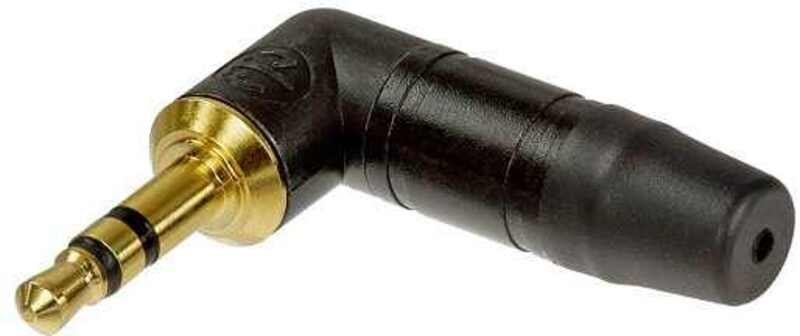 Vinklad 3,5mm teleplugg med kabelchuck. Helt i metall. Svart.