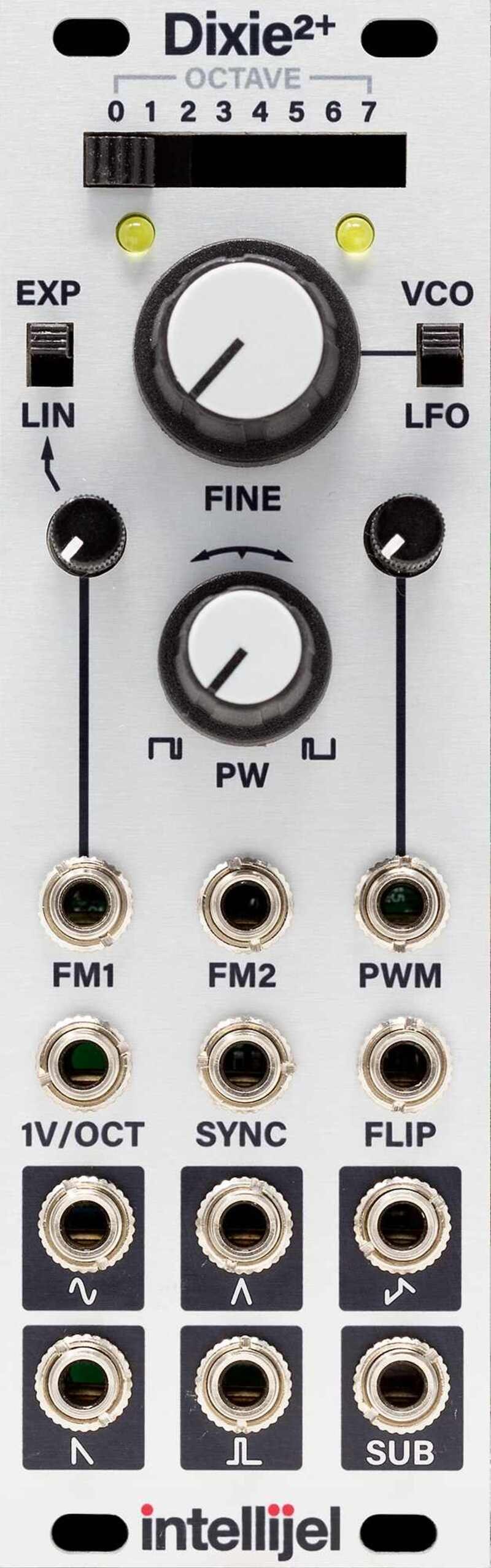The beating heart(s) of your rack, the analog oscillator. If the Dixie2's six waveform outputs don't offer enough shapes for you, the PWM, sync, and FM inputs have you covered. Unique to the Dixie2+ is PWM control, exponential FM, and an Octave switch for quick and precise musical tuning. Great in pairs, two hearts are better than one.