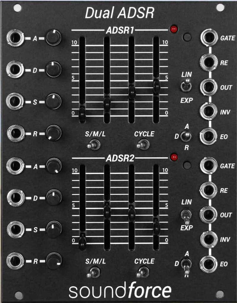 The SoundForce Dual ADSR is a feature-rich envelope generator with full CV control of each stage.