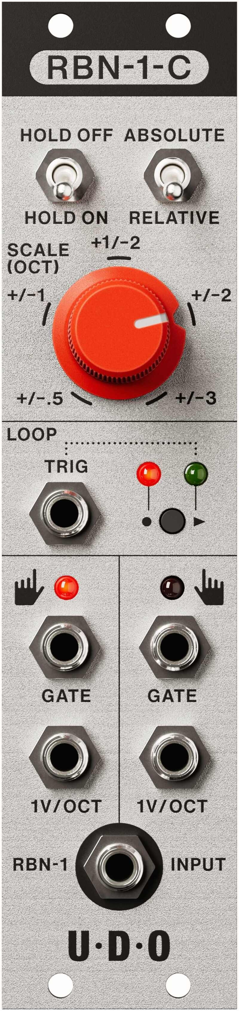 RNBC1 is an Eurorack interface specially designed for the UDO Audio RBN-1 Performance Ribbon Controller. It features a live looper with trigger input and two touch CV/gate outputs.