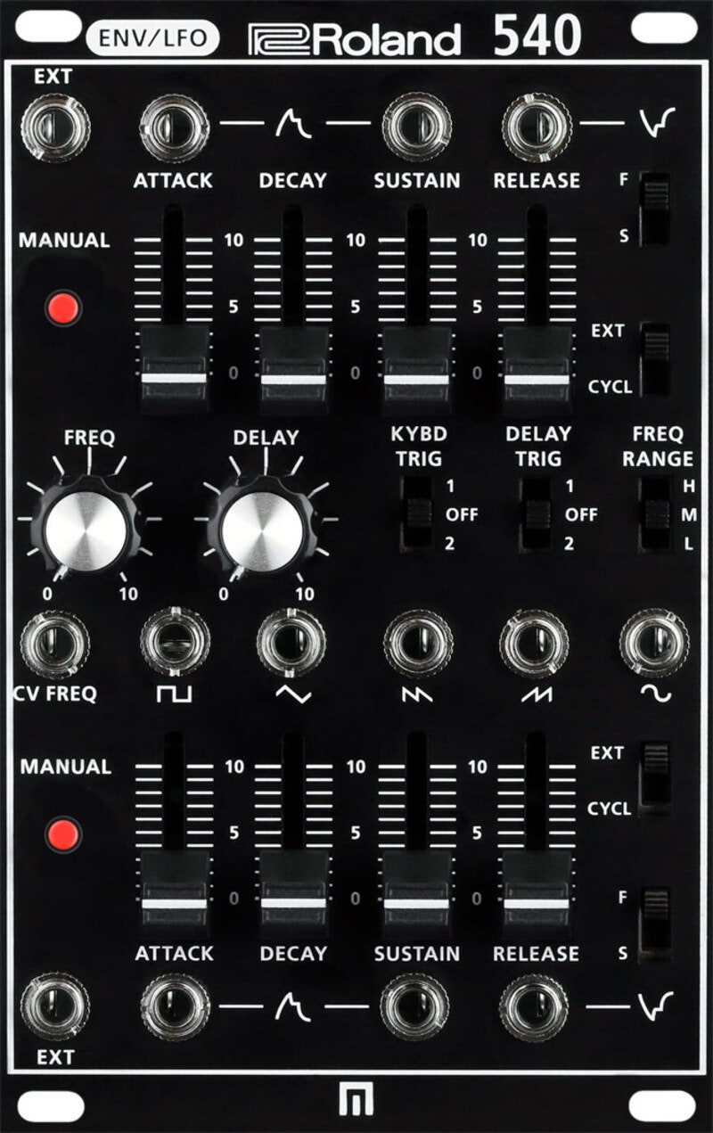 Artikelnummer 1048404540 Dual Envelope Generator och LFO (Low Frequency Oscillator) är en flerfunktionell modulationsgenerator. Den här modulen har två individuella ADSR (Attack, Decay, Sustain, Release) envelope-sektioner som ger variabel spänning för att styra andra syntmoduler i Eurorack-format som till exempel oscillatorer, filter och VCA. Varje sektion kan startas externt, internt eller manuellt med dedikerade kopplingsmöjligheter för varje envelope, liksom en inverterad utgång. 540 har även en voltstyrd LFO som kan skicka 5 olika vågformer. Kontroller på frontpanelen styr både LFO frekvens och fördröjningen för dess start. Delay och reset kan startas från antingen envelope 1 eller 2.