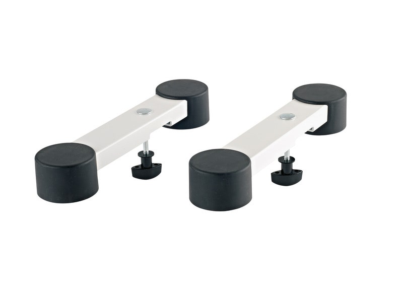 The short version of support arms for »Omega« keyboard stands 18800, 18810 and 18820. The length of the support arms is only 264 mm and is therefore ideally suited for stage pianos and keyboards with a small depth. The large round rubber pads ensure a secure and anti-slip hold.