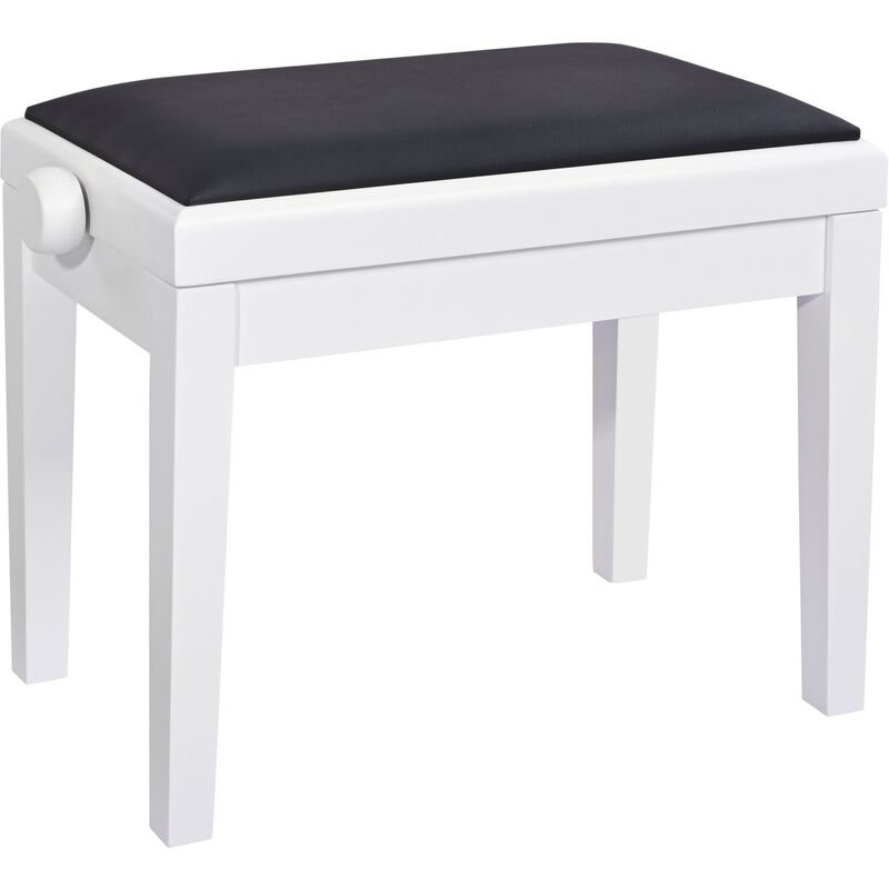 Artikelnummer 1096317Höjdjusterbar pianobänk i massivt trä, vit matt finish med svart konstlädersits