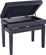 Artikelnummer 1096322Höjdjusterbar pianobänk i massivt trä med förvaring, matt svart finish och svart konstlädersits