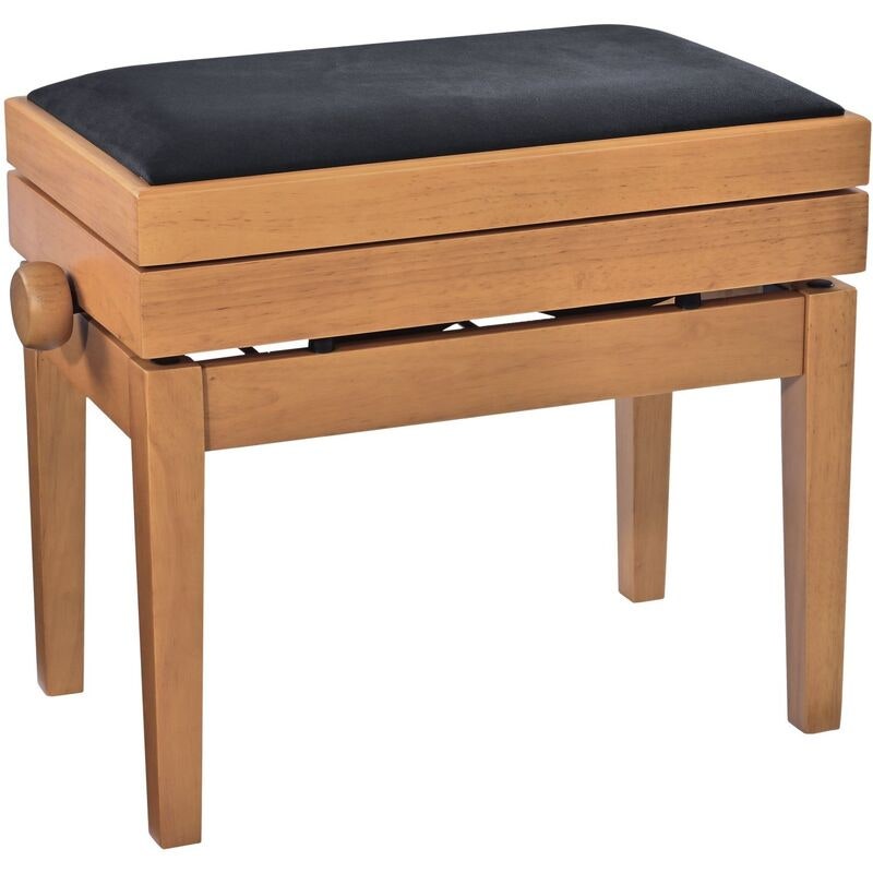 Artikelnummer 1096323Höjdjusterbar pianobänk i massivt trä med förvaring, natur matt finish och svart veloursits