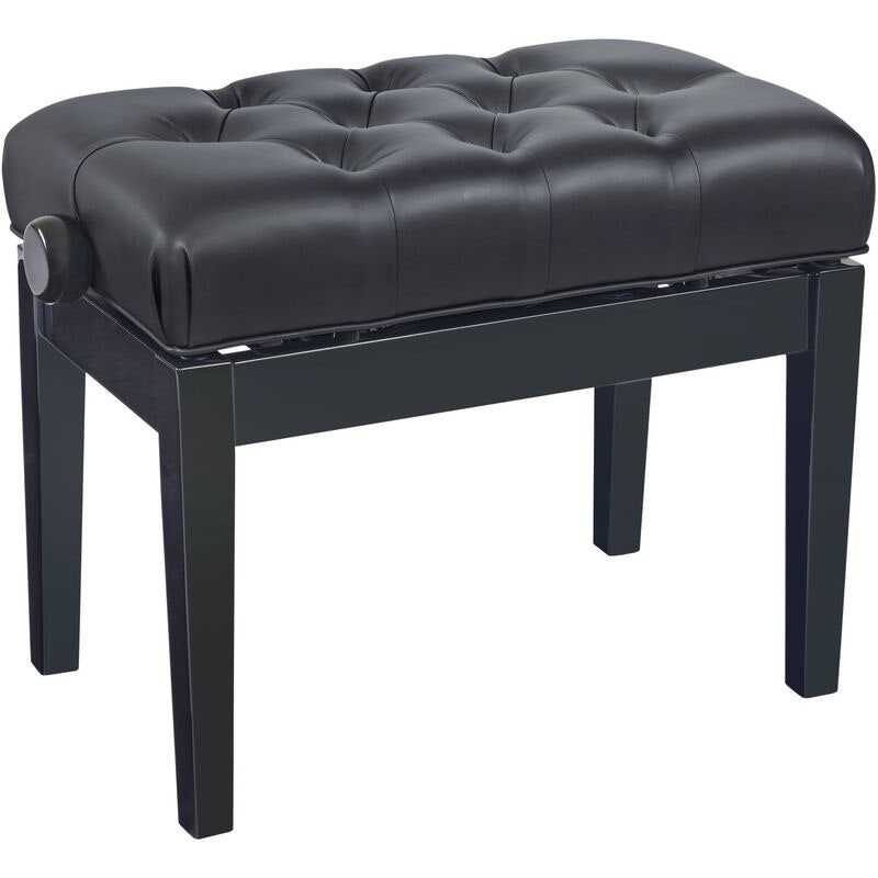 Artikelnummer 1096324Hydraulisk pianobänk med pneumatisk höjdjustering, svart högglansfinish och quiltad konstlädersits