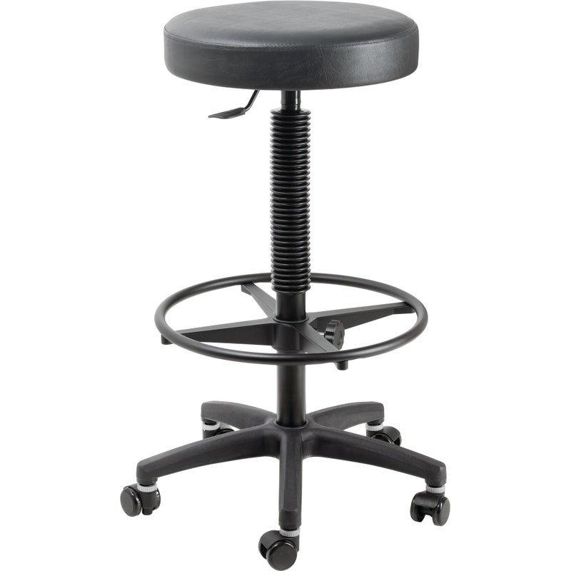Extra hög pall med hjul, rund sits och steglös höjdjustering med pneumatisk fjäder.