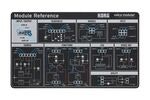 volca modular’s modules are connected via the included pin cables, allowing a diverse range of combinations. The unit's compact chassis provides 50 patch points. Inputs and outputs are color-coded for recognition at a glance, and the signals are also marked by symbols to indicate audio, control, gate or trigger. Normally, each signal is connected according to its use, but on the volca modular, signal levels are universally compatible between modules, allowing hidden possibilities to arise from patching that defies common sense. Twenty pin cables are included, and also included is a reference sheet explaining each patch point and providing basic examples of patching.