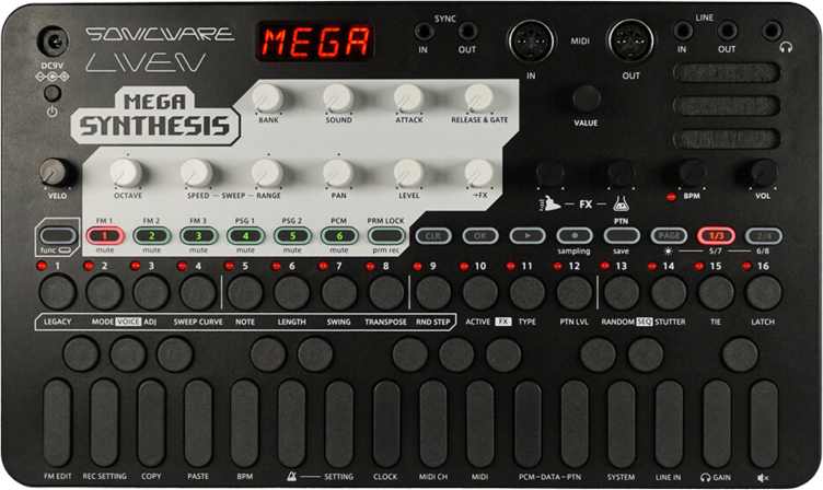 - Sound & pattern bank by Yuzo Koshiro, renowned composer, from “Ys”, “The Streets of Rage” and “Etrian Odyssey”.