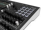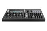 Embedded in the front panel, a 4x4 silicon pad matrix invites you to launch notes, chords, arpeggios and sequences with up to 32 steps for notes and multiple parameter lines. Direct access to the parameters is granted by the seven encoders to the left and the right hand side of the touch screen.