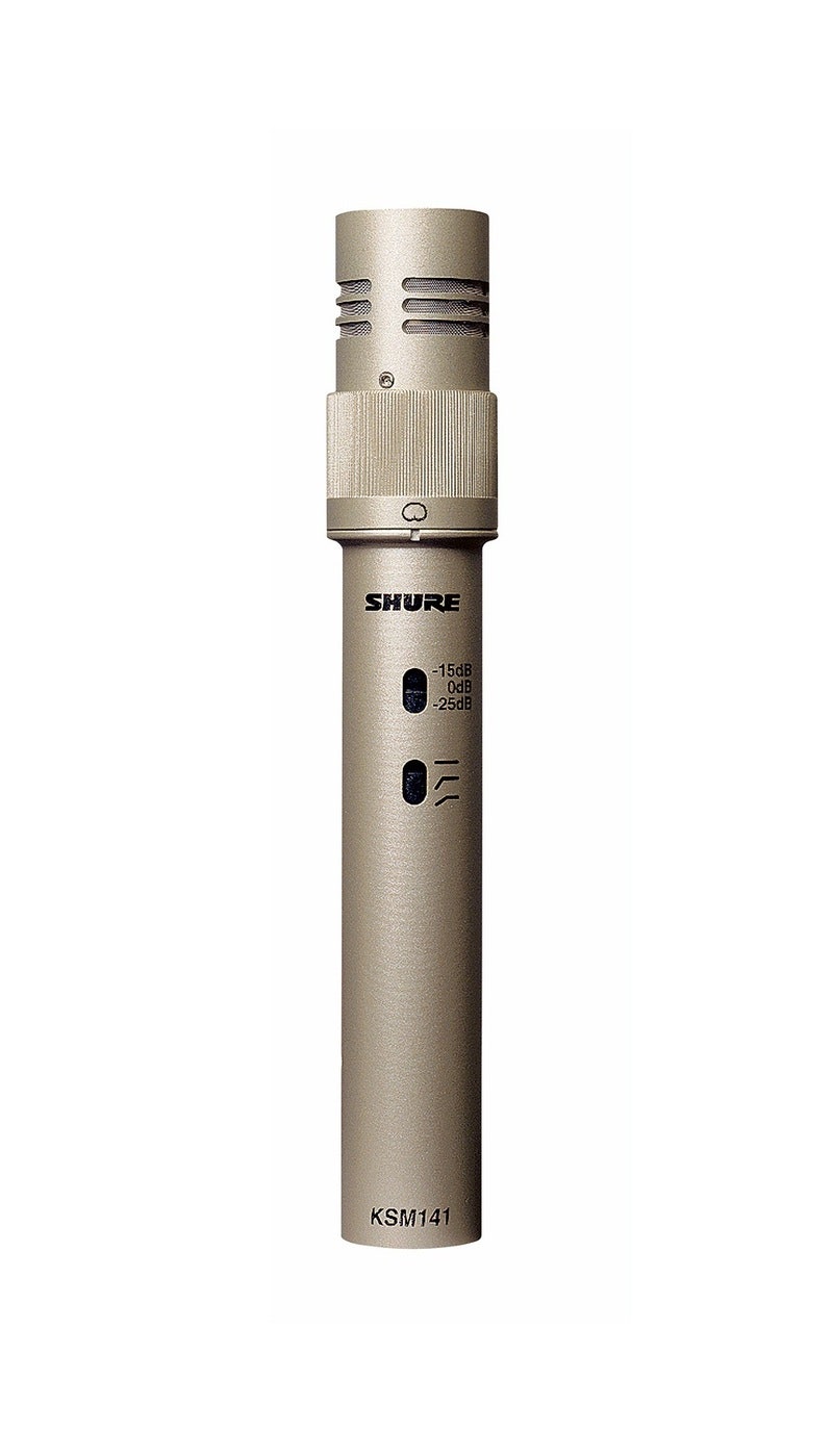 Artikelnummer 1059768The KSM141 is a dual-pattern end-addressed condenser microphone with a rotating collar, allowing easy switching between a consistent cardioid or true omnidirectional polar pattern for smooth and extremely focused sound reproduction. Designed for studio use, yet rugged enough for live applications, the KSM141 can withstand extremely high sound pressure levels (SPL). Its low self-noise and extended frequency response make it ideal for recording musical instruments.