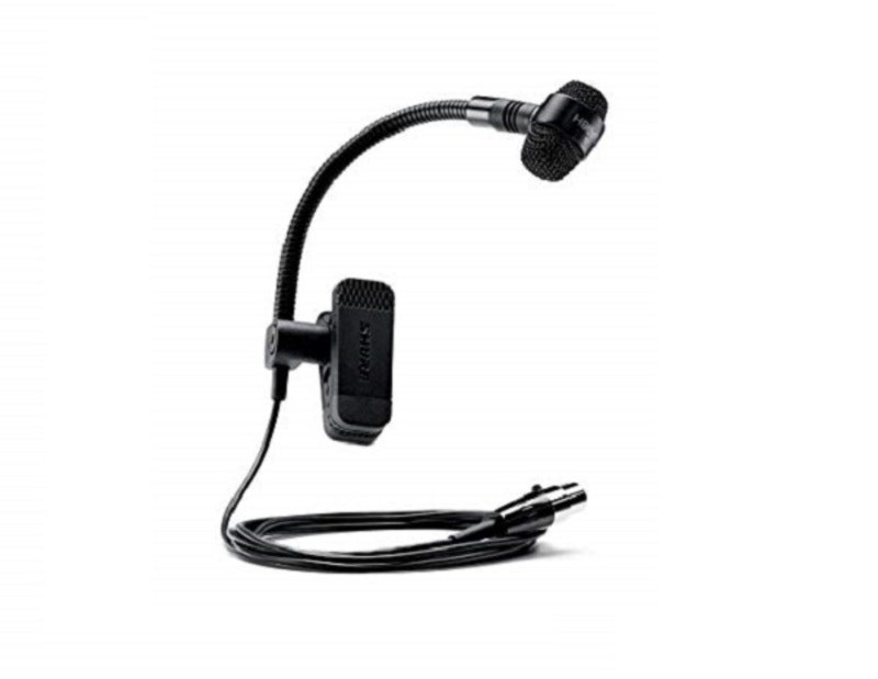 Cardioid condenser instrument clip microphone provides clear reproduction of wind instrument sound sources. The product includes an integrated horn clamp.