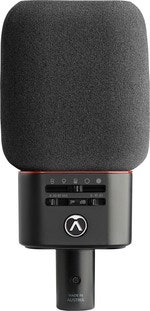 Levereras med shockmount, mini XLR, mikrofonhållare och vindskydd.