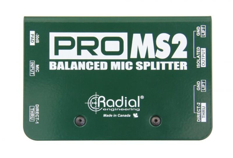 The ProMS2™ is a balanced mic-level splitter designed to send a signal to multiple destinations simultaneously on stage, with one transformer-isolated output and two direct outputs.