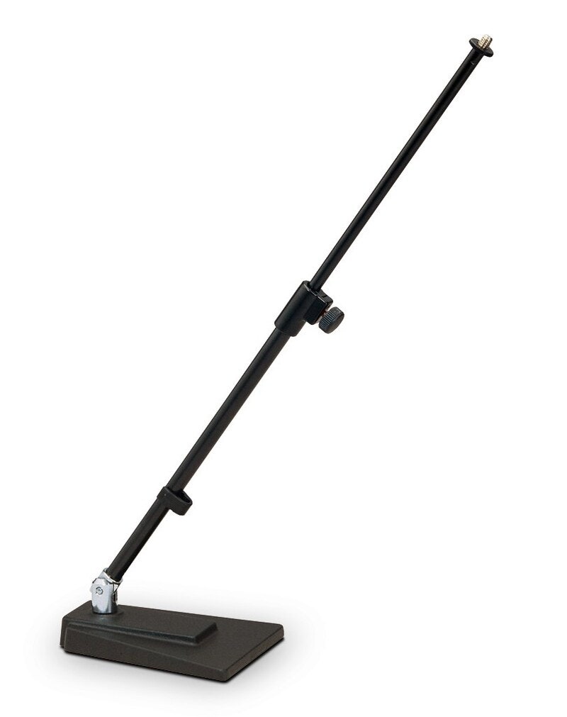 Artikelnummer 10505782-delat mikrofonstativ med rektangular fot och ställbar vinkel. Svart.