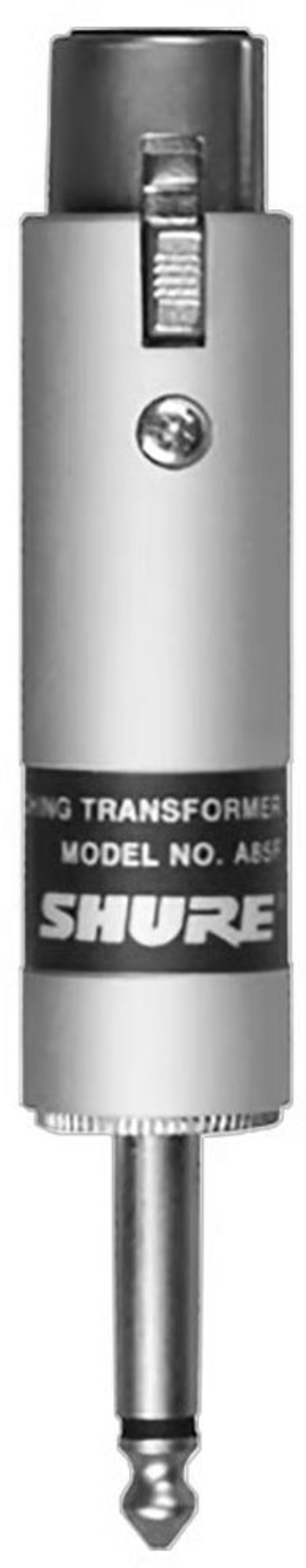 Shure A85F är en låg-till-högimpedanstransformator som används för att ansluta en balanserad lågimpedansmikrofonutgång till en obalanserad högimpedansingång på en mixer/inspelare.