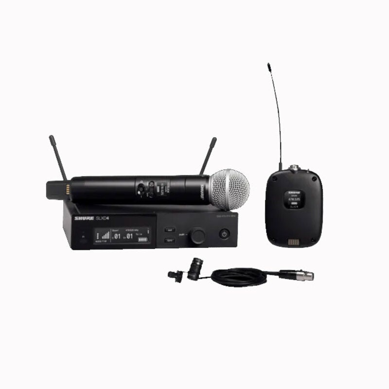 SLXD124 / 85 har den legendariska SM58® kapseln monterad på en SLXD2 handhållen sändare, en SLXD1 trådlös body pack-sändare med WL185-mygga somger transparent digitalt ljud och solid RF-stabilitet för föreläsningssalar och liveframträdanden.