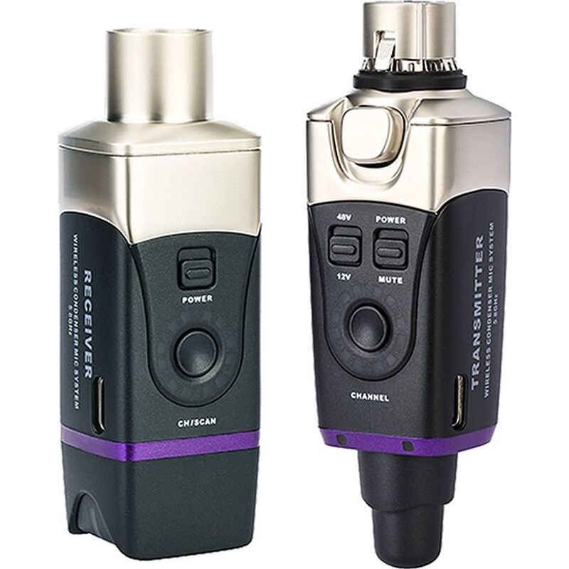 Digitalt 5.8 GHz, 48/12V fantom, 6 kanaler, 24-bit/48 kHz, 30 m räckvidd, 5 h batteri, USB-laddning, XLR in/ut, 5 ms latency