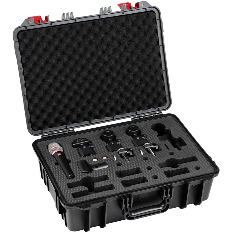 Packet är komplett med sargfästen till pukmickarna och klykor att fästa på golvstativ (ingår ej) till dom övriga. Allt levereras i en otroligt robust och rejäl hardcase med formskuren foam så allt ligger väl skyddat och säkert vid transport.