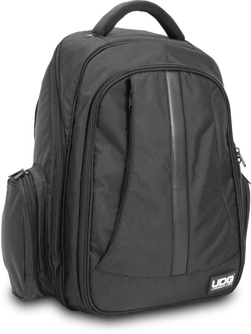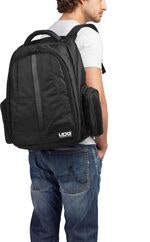 UDG Ultimate Backpack är designad för dagligt bruk och med den digitala DJ:n i åtanke. Tillverkad av högkvalitativt, vattenavvisande nylon och innehåller ett vadderat laptopfack som rymmer en 17" laptop. Huvudfacket kan även rymma en MIDI-kontroller i storlek med Native Instruments MASCHINE MK2, och i huvudfacket finns ett vadderat fack med snabb åtkomst för hörlurar. Ryggsäcken har tillräckligt många blixtlåsförsedda fack för att säkert förvara USB-minnen, SD-kort, kablar, nätadaptrar, kompaktkameror, MP3-spelare och andra tillbehör. Väskan är även utrustad med en rem som gör att du enkelt kan fästa den på alla UDG-trolleys.