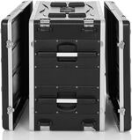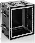 En 12U racklåda konstruerad för att skydda känslig utrustning under transport och användning. Lådan har inbyggd stötdämpning, god ventilation och justerbara stöd för bakre utrustningsfäste.