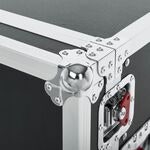 Racket är byggt av 9 mm plywood och har ett yttre laminatlager för ökad hållbarhet. För ökad säkerhet och stabilitet har det förstärkta kulhörn samt pläterad hårdvara av kommersiell kvalitet. Främre och bakre rackrälsar är 3,2 mm tjocka för att hålla utrustningen säkert på plats. Den är också utrustad med en aluminiumlist med låsningsfunktion för extra stabilitet.