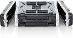 Rackrailsen är gängade och tillverkade i zinkpläterat stål. De är fältutbytbara och bidrar till stabil montering. Med ett rackdjup på 19,25 tum passar caset för en mängd olika enheter trots sin låga höjd.