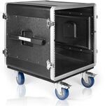 Artikelnummer 1091693Rackbas, 10U, 21″ djup, hjul, två låsbara, sänkta handtag, vridlås, polyeten, GRC-kompatibel, vikt: 14,97 kg
