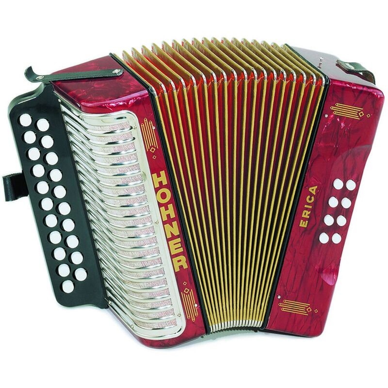 Erica är ett diatoniskt dragspel med två rader, avsett för traditionell musik och socialt musicerande.