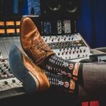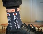 Artwork: Faders + meters + pan pots all the way around, small “R” logo on cuffs, big “R” logo on bottom of one sock, and “RUPERT NEVE DESIGNS” on the bottom of the other.