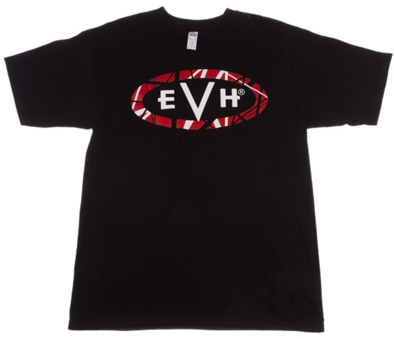 Let everyone know you're an EVH® fan with this stylish logo t-shirt! This shirt is all black with a large red, black and white EVH® logo on the front. 100 percent cotton