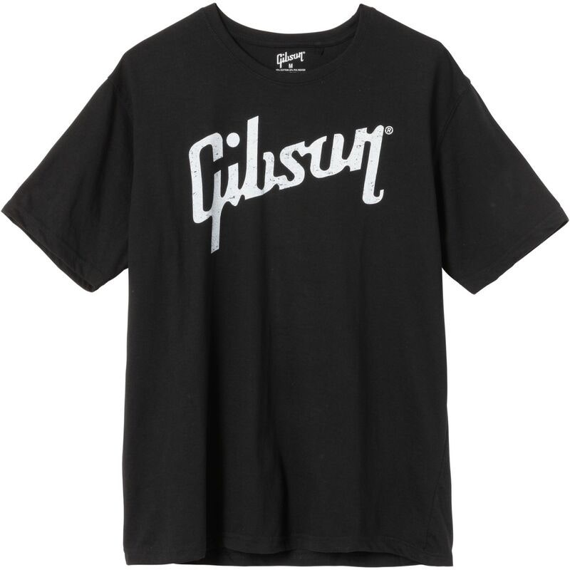 Artikelnummer 1094717t-shirt, Gibson Logo, svart, 65% bomull/35% polyester, distressed tryck, athletic fit, unisex, storlek XL