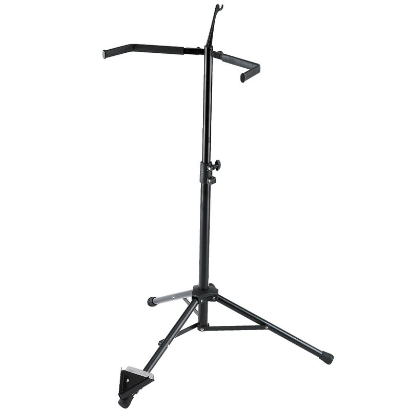 Artikelnummer 1000821Kontrabasstativ, justerbar höjd, robust, hopfällbart, stråkkrok, svart.