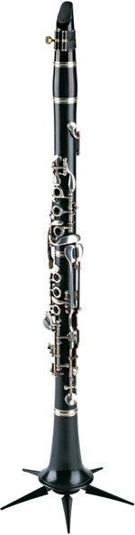 Kompakt och hopfällbart klarinettstativ som enkelt plockas isär och kan förvaras i klarinettens klockstycke för att ta minimalt med plats vid transport.
