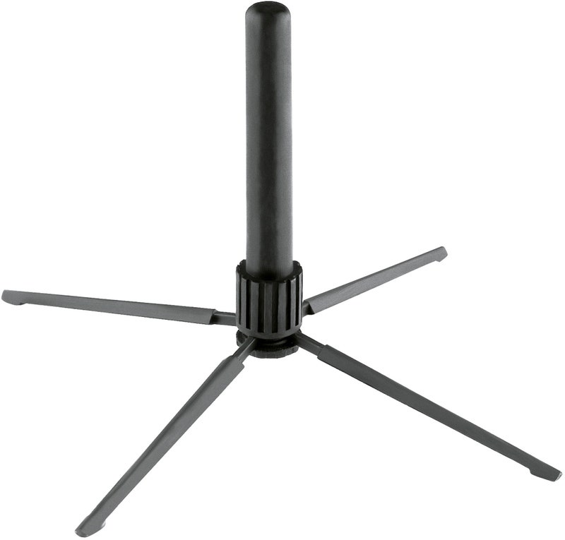 Kompakt och hopfällbart flöjtstativ som enkelt fälls ihop och tar minimalt med plats vid transport.