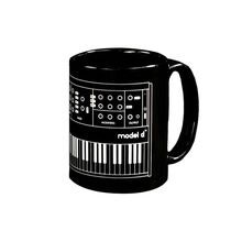 Keramisk kaffemugg med Moog-design, svart finish med klaviaturmotiv, ca 325 ml kapacitet, tålig för daglig...