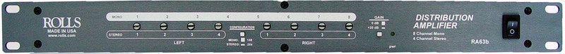Artikelnummer 1005806Line level-förstärkare för distribution av 8 balanserade mono/ 4 stereo audiosignaler.