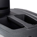 Systemet är byggt för att transporteras och levereras med en axelväska för pelaren. Ett integrerat handtag på subwoofern gör det enkelt att flytta mellan olika spelningar och platser.