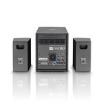 The new LD Systems DAVE 12 G3 is the perfect active PA system for high-powered live gigs, multimedia presentations, and permanent installations in bars and clubs. A 12" bass reflex subwoofer and the satellites with 6.5" drivers and HF horns ensure a good sound with driving, defined bass, natural mids, and clear treble. The 2.1 power amp stage is built into the subwoofer and provides the system components with 1x300W + 2x120W of continuous power.