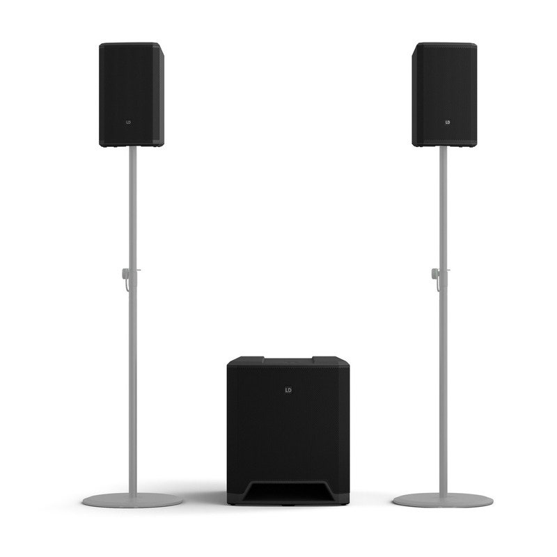 - Powered 2.1 PA with 15" subwoofer and two 8" satellites